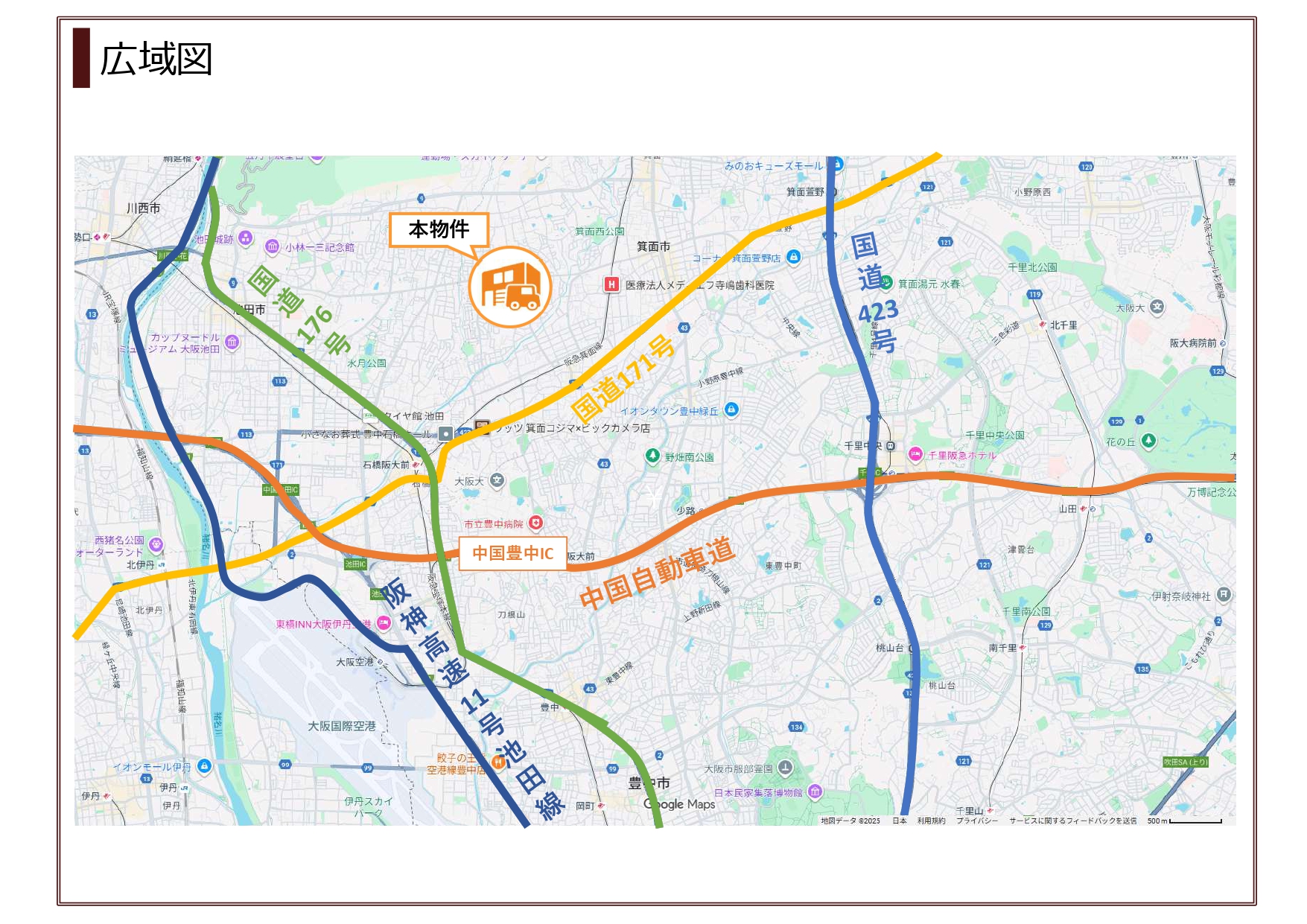 - ・中国豊中ICまで車で10分と、吹田・兵庫方面へもアクセスしやすい立地