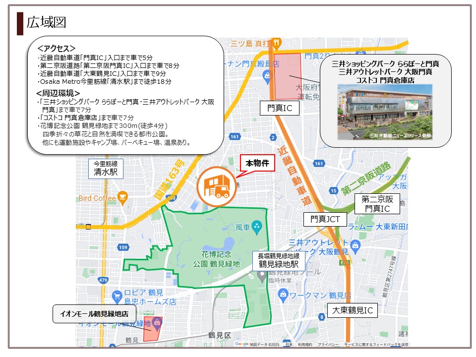 - 近畿自動車道「門真IC」入口まで1.6km (車で5分) ※上り(吹田方面)