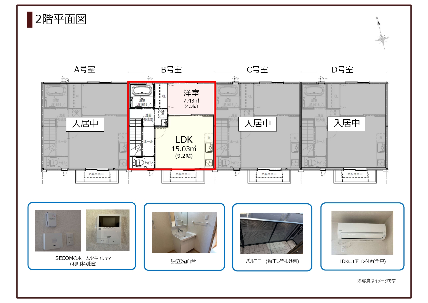 - LDK9.2帖(エアコン付き)、クローゼット付洋室4.5帖