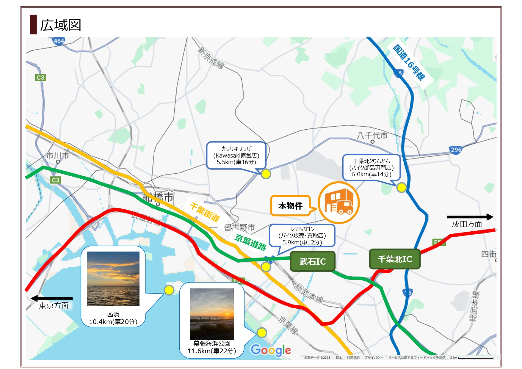 東関東自動車道「千葉北IC」入口まで5.6km(車で16分)