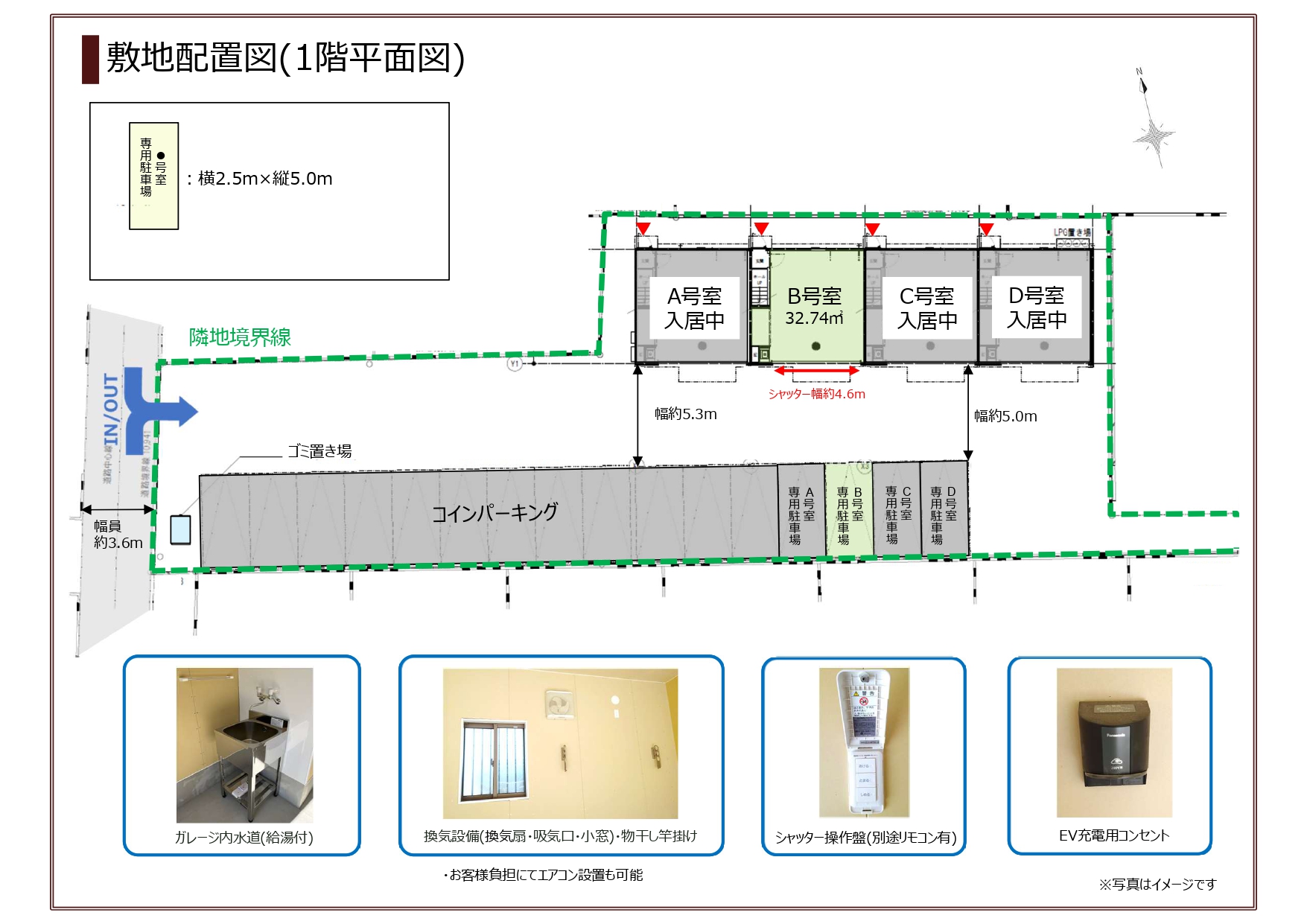 - ガレージ 幅芯々約5.0m×奥行芯々約6.0m