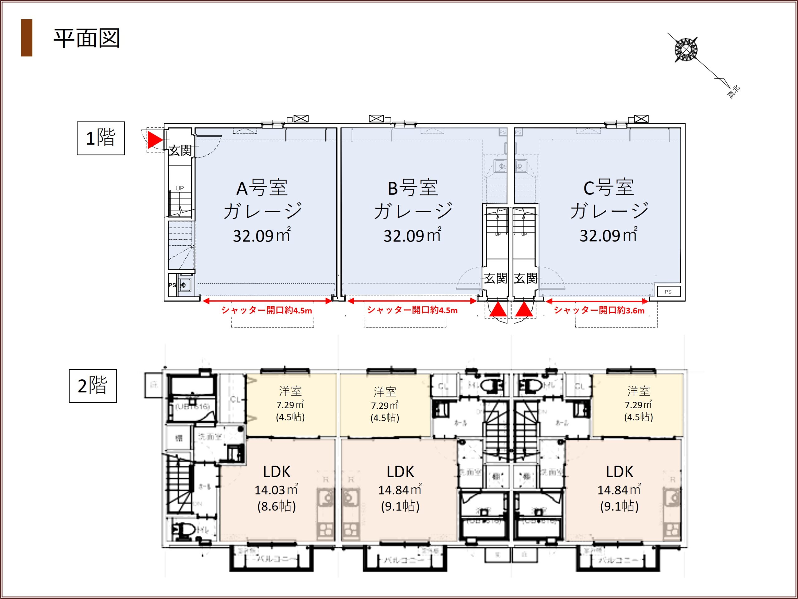 - 69.97㎡(うち車庫32.09㎡を含む)