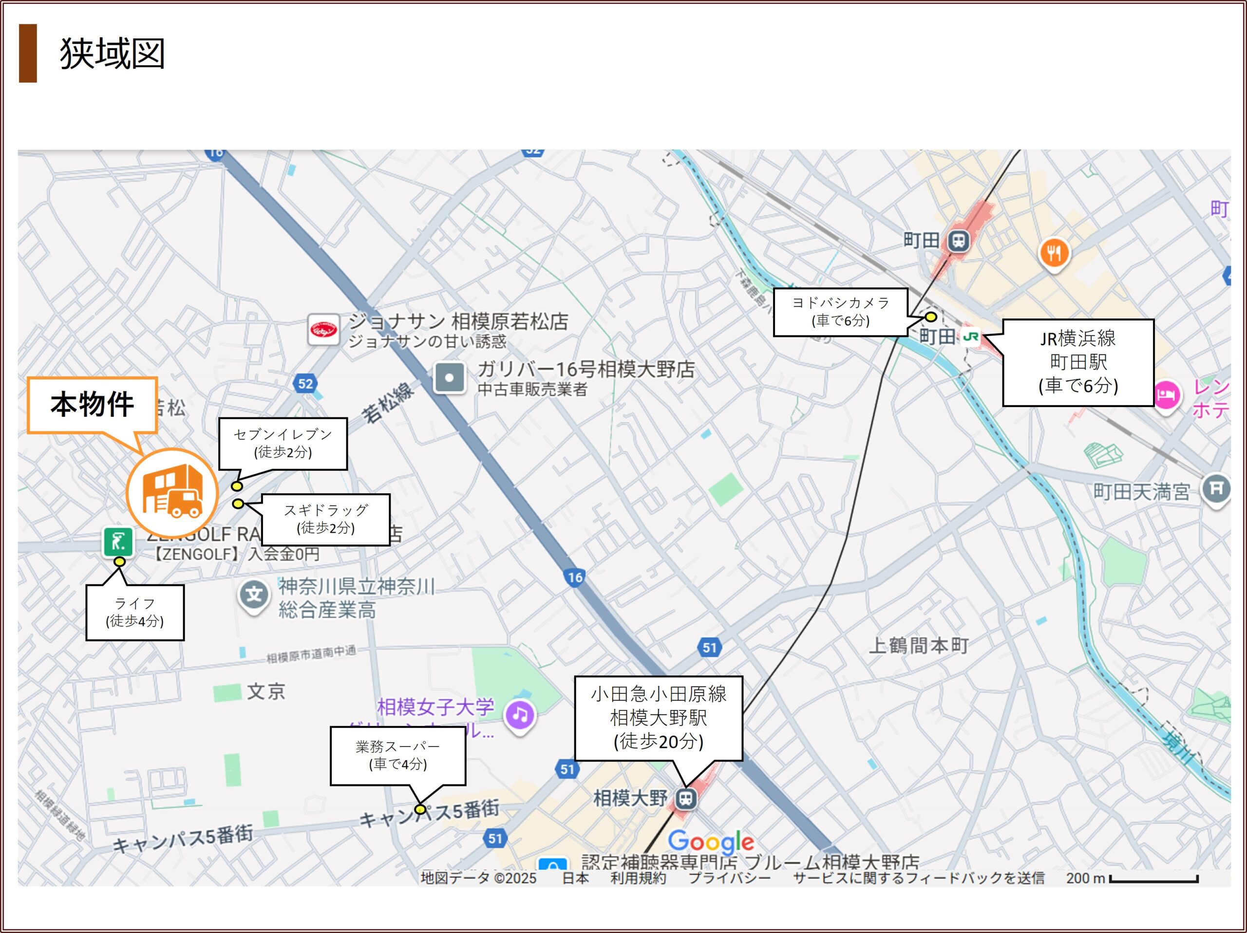 小田急小田原線「相模大野駅」まで1.6km(徒歩20分)