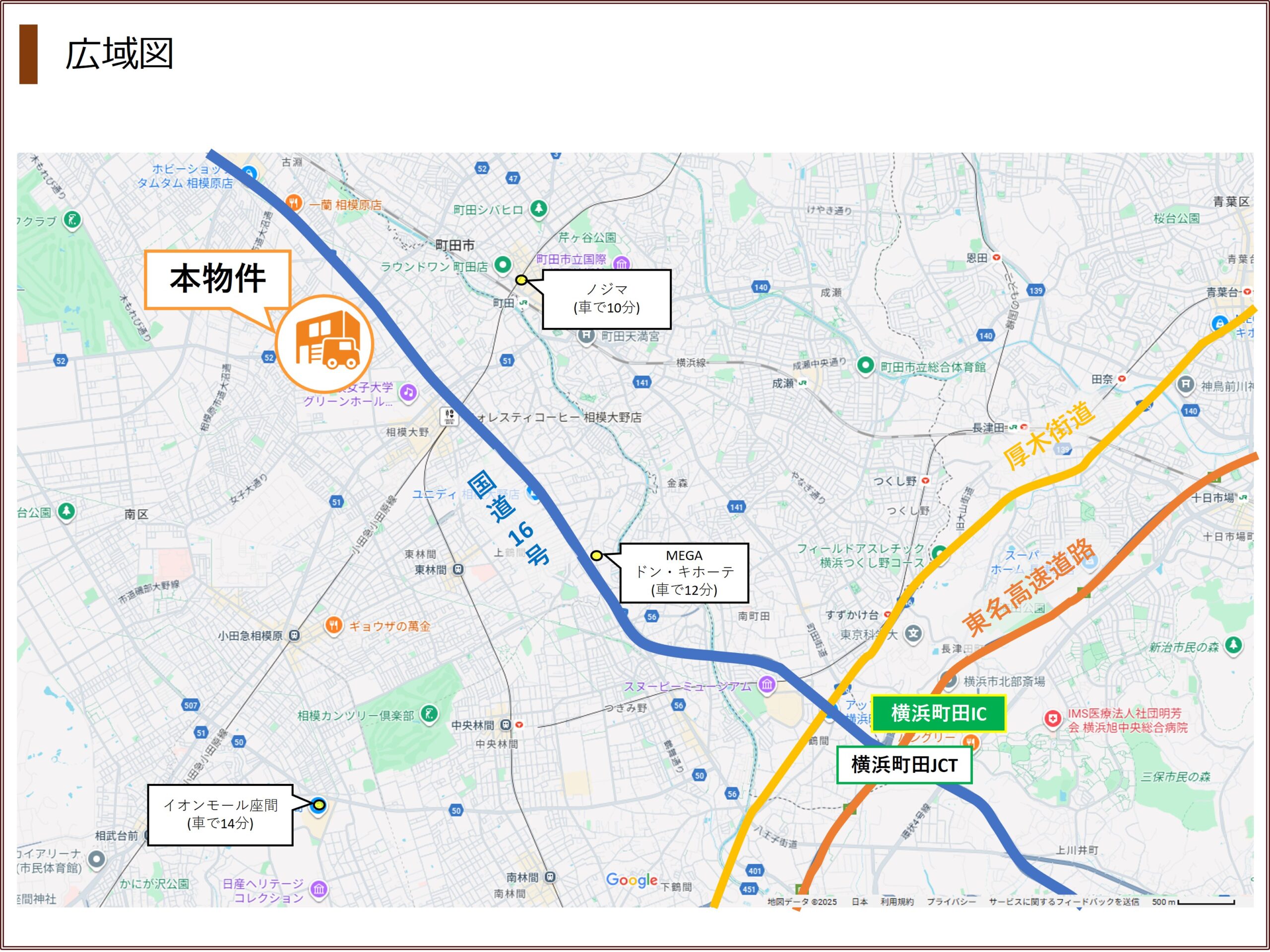 - 東名高速道路「横浜町田IC」まで7.0km(車15分)