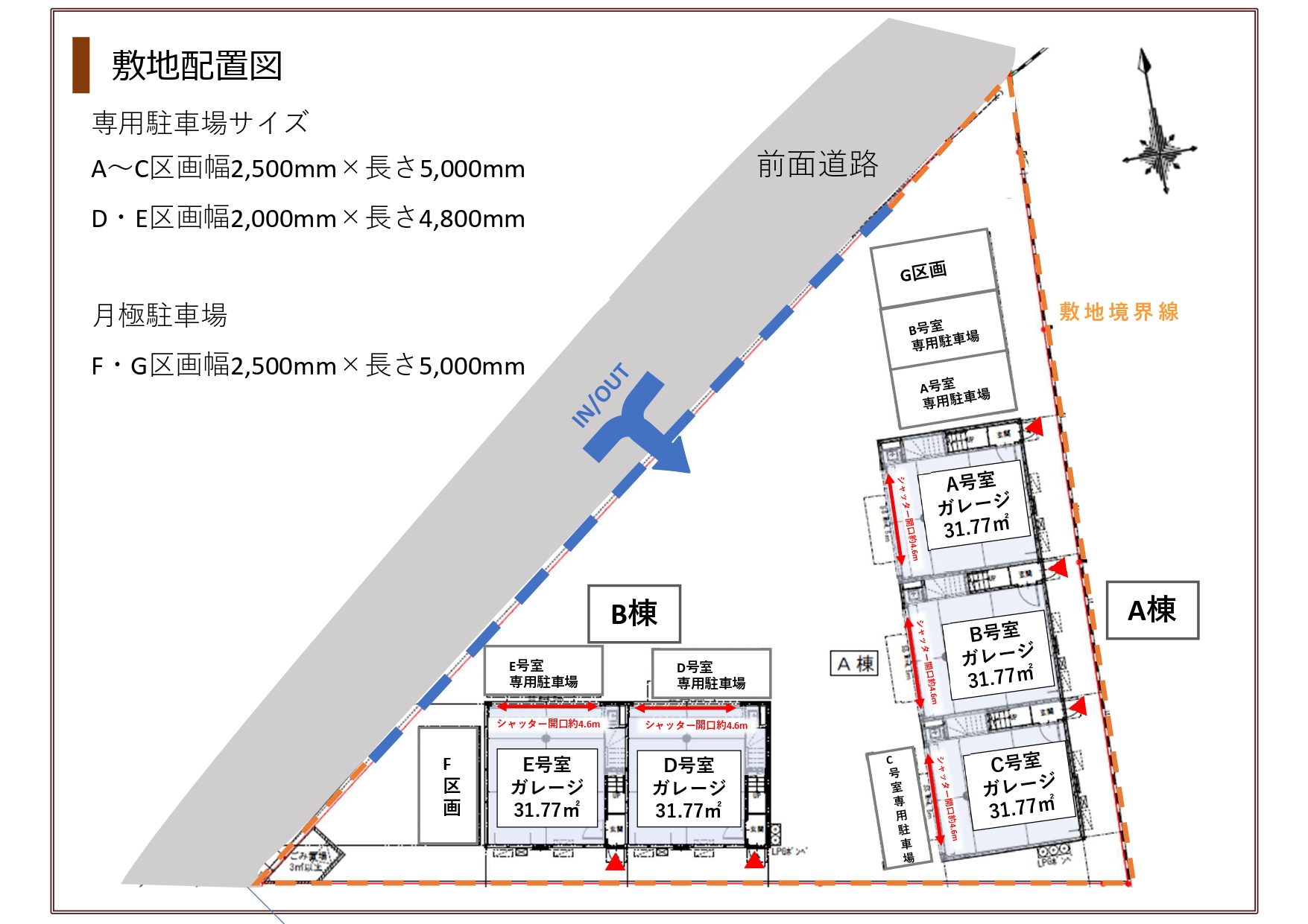 ガレージ 幅芯々約5.0m×奥行芯々約6.0m