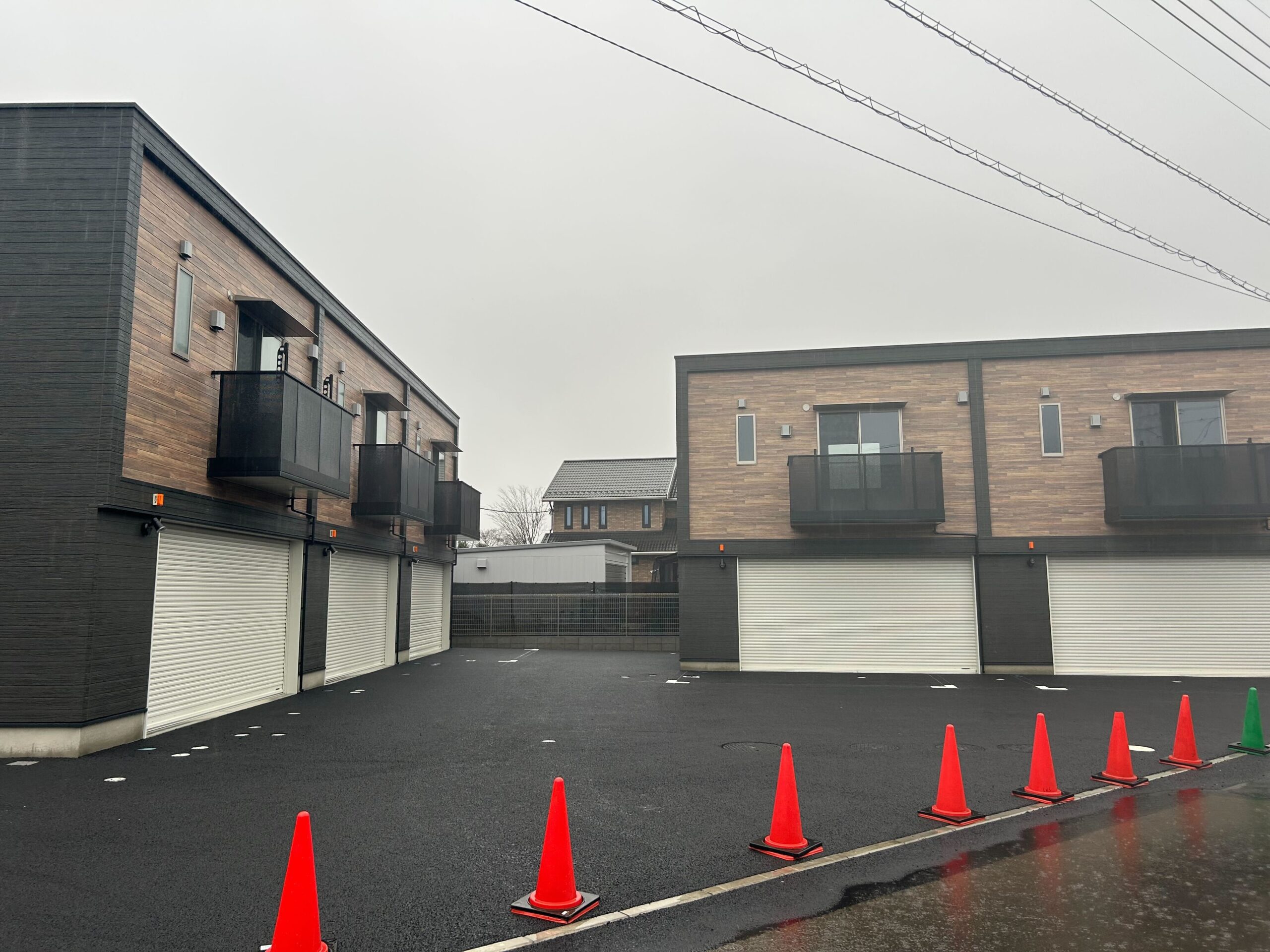 【車2台分収容可能ガレージ+1LDKの居住スペース+屋外専用駐車場(車1台分)】