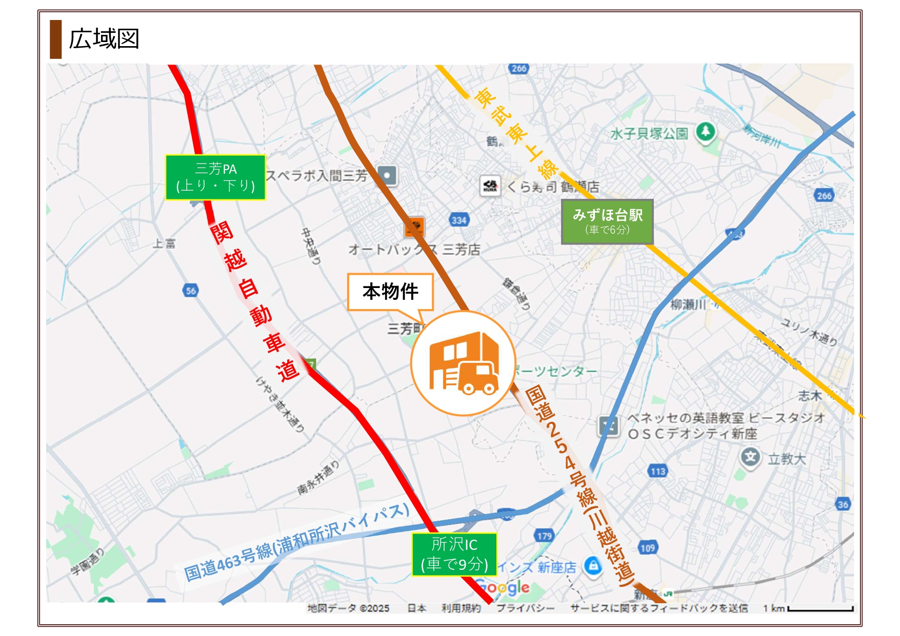 - ・最寄りICまで車で9分、関越自動車道を経由して都心へのアクセスも可能
