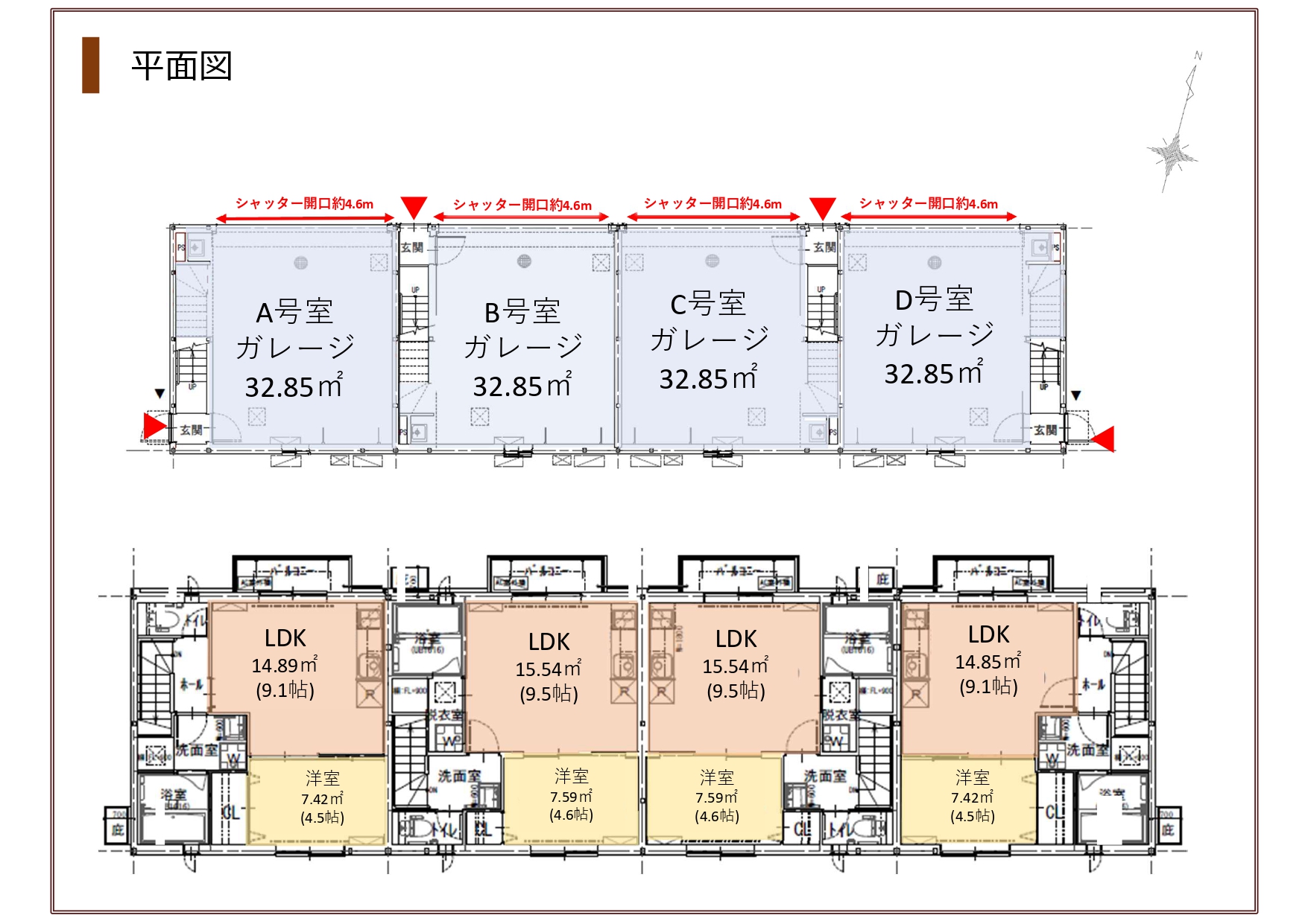 A・D号室:LDK9.1帖、クローゼット付洋室4.5帖