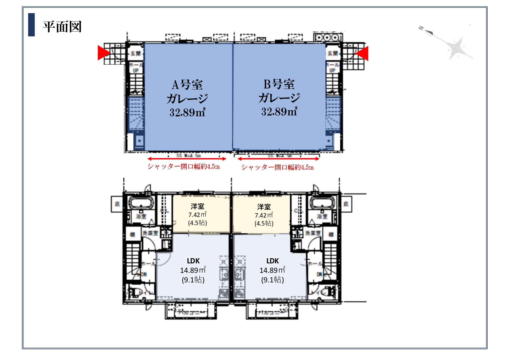 - 2F:A・B号室LDK9.1帖、洋室4.5帖