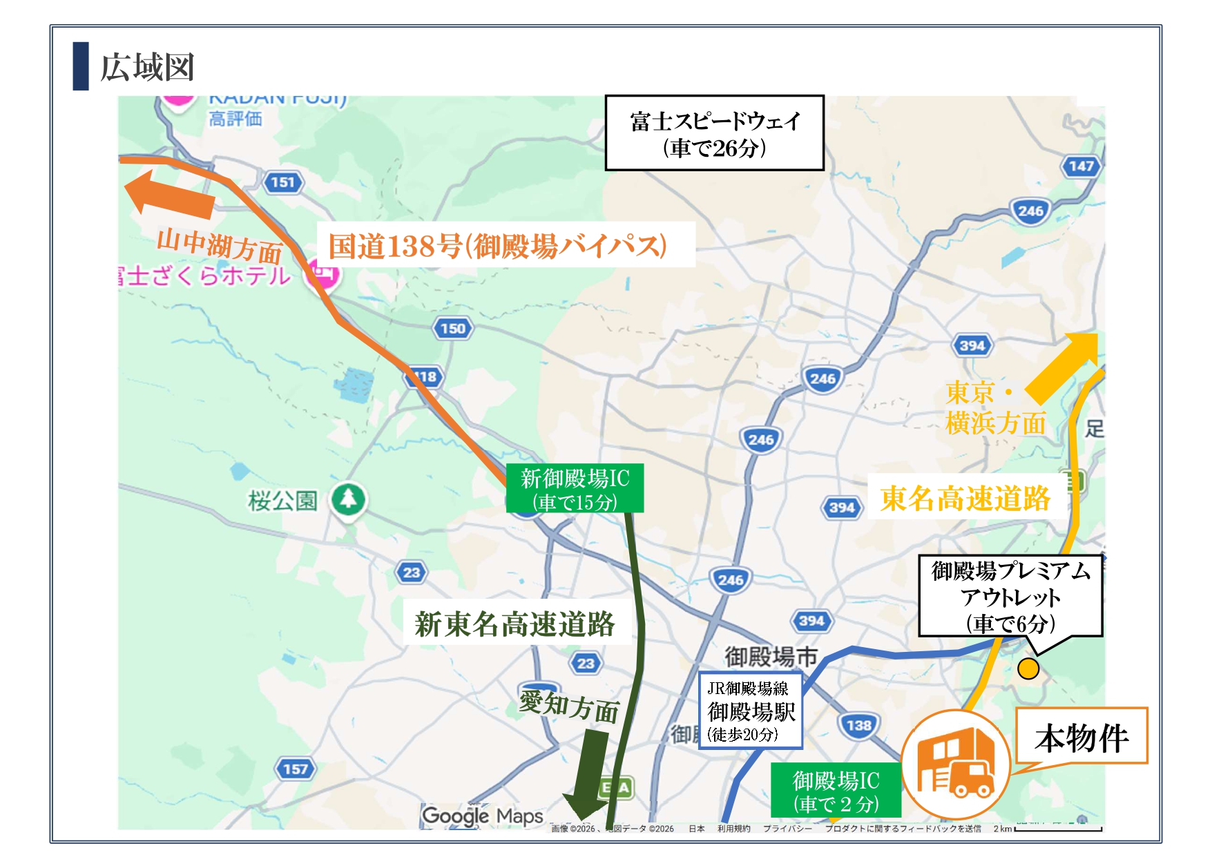 - 東名高速道路「御殿場IC」入口まで550m(車で2分)