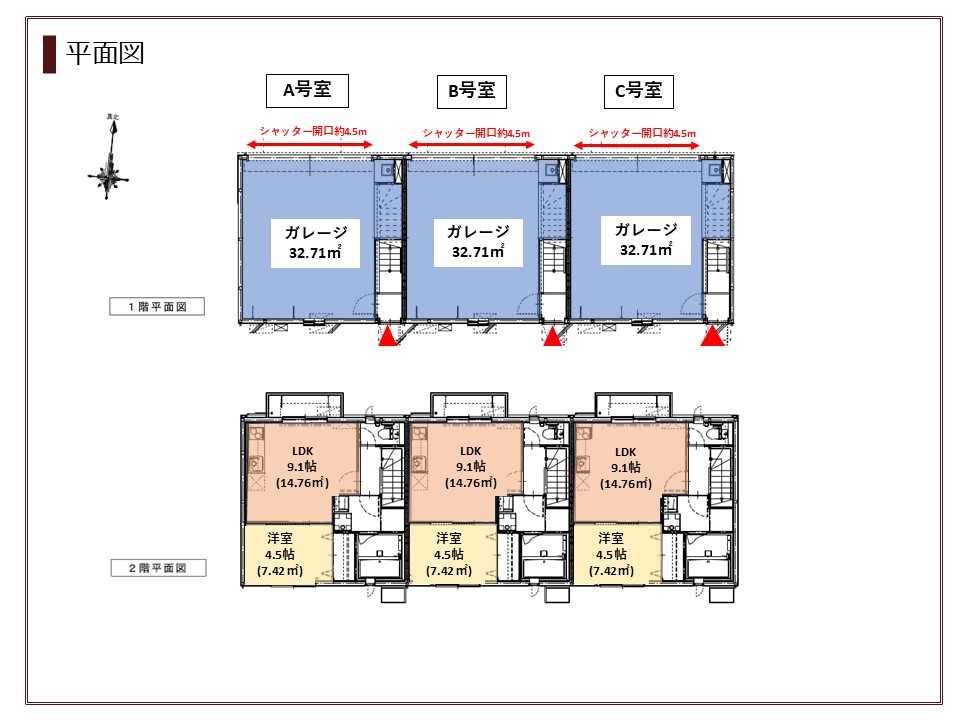 車2台分収容可能ガレージ+1LDKの居住スペース+屋外専用駐車場 (車1台分)