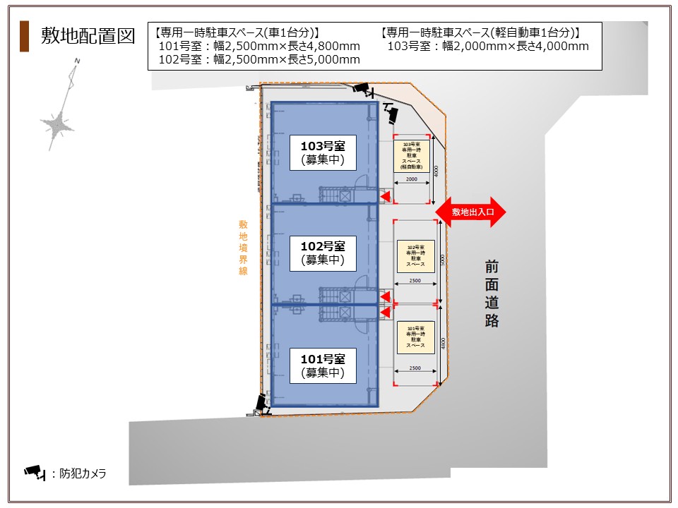 103号室:敷地内専用一時駐車スペース(軽自動車1台分)