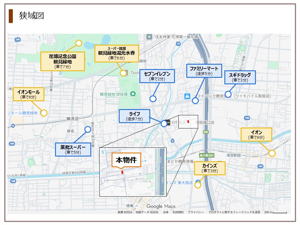・車で10分圏内にはららぽーと、コストコ、アウトレットパーク等の大型商業施設や花博記念公園 鶴見緑地といった広大なレジャー施設も点在